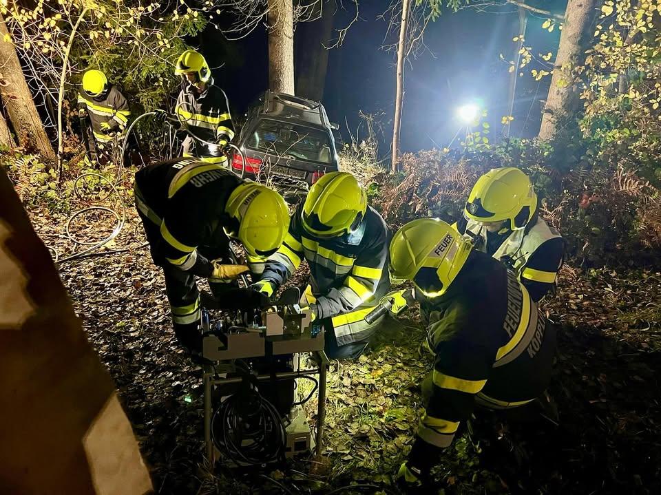 Ein Team kümmerte sich um das Bergen eines Autos aus unwegsamem Gelände, während ein weiteres die Rettung einer verletzten Person übernahm. Parallel dazu stand ein simulierter Brand auf dem Programm, der unter realistischen Bedingungen gelöscht wurde.