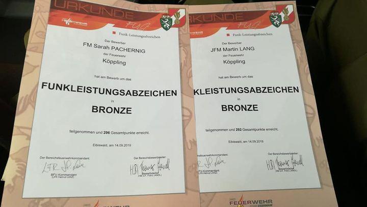 Unsere Kameraden FM Sarah Pachernig und PFM Martin Lang, konnten heute nach mehreren Wochen Vorbereitung das Funkleistungsabzeichen in Bronze erringen.💪🥉