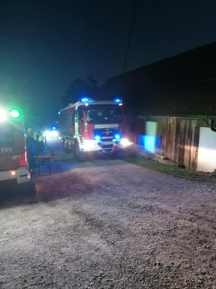 Übungsannahme war ein Wirtschaftsgebäudebrand beim Anwesen Gratzer in Hausdorf mit mehreren vermissten Personen sowie eine in eine Zisterne gestürzte Person und einer eingeklemmten Person unter einem Fahrzeug.
