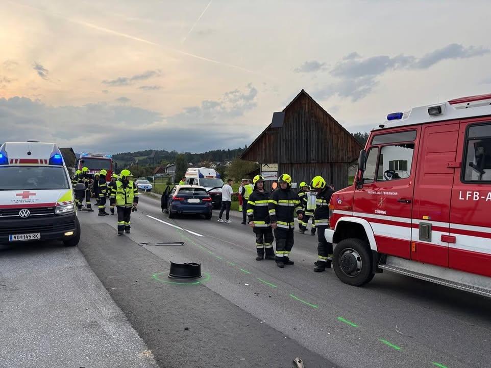 Am 13.09.2025 wurden wir um 18:19 Uhr gemeinsam mit der Feuerwehr Söding zu einem Verkehrsunfall auf der B70 alarmiert.